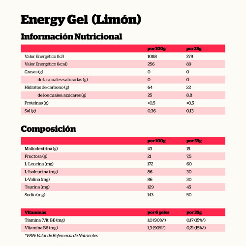 Información Nutricional (por gel 35 g) (Sabor Fresa)