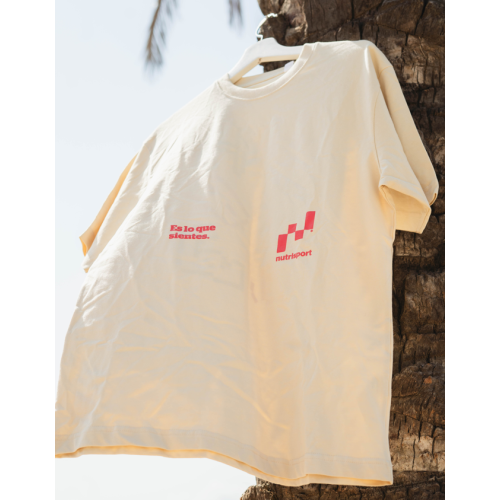 Camiseta 100% algodón de corte amplio. Cómoda y versátil para tu día a día o entrenos suaves. Gráfico pixel art con la esencia Nutrisport: Es lo que sientes.
