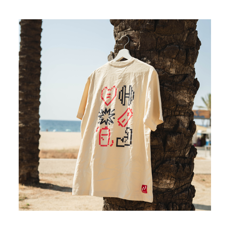 Camiseta 100% algodón de corte amplio. Cómoda y versátil para tu día a día o entrenos suaves. Gráfico pixel art con la esencia Nutrisport: Es lo que sientes.