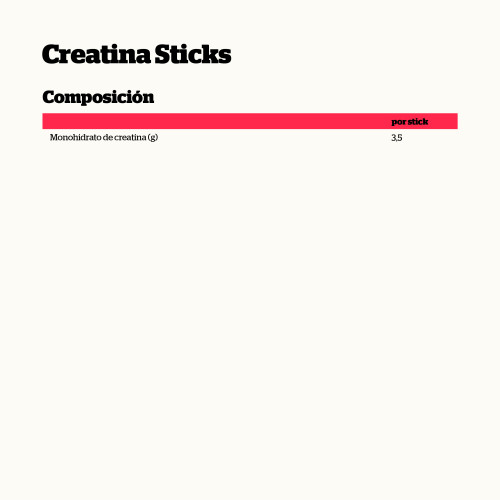 Composición por stick: Monohidrato de creatina (g) 3,5